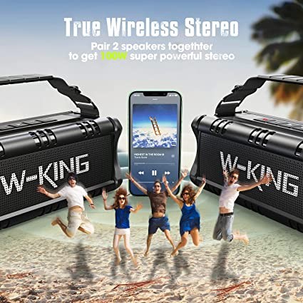 W-KING 100W Bluetooth Speaker V5.3, Portable IPX6 Waterproof Party Speaker Loud with Deep Bass/110dB Huge Sound/DSP, Karaoke Outdoor Speaker, with Light/Mic and Guitar Port/ECHO/USB Port/Adapter