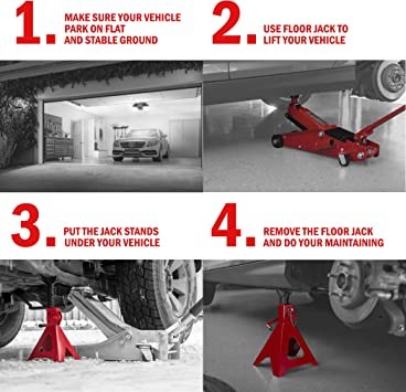 The wide pyramid base and large top saddle provide enough stable support for safety. Use on a level surface! Always use the jack stand on a flat, stable floor.