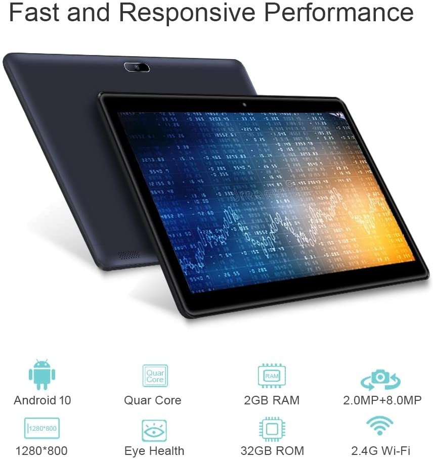 • ★【Long-lasting Battery】 This tablet PC has a built-in 6000mAh battery that provides plenty of battery life. You can download thousands of apps in the Google Play Store such as Netflix, Skype, Facebook, and YouTube and enjoy up to 5-6 hours of video playback or music listening.